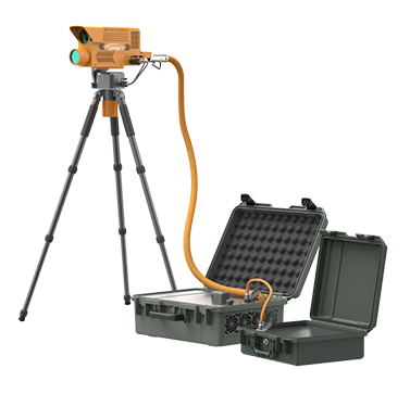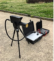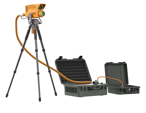 光學破拆裝置內置高能光纖激光器,能夠從地面發射激光對鋼板、鋁板、鋼筋、彩鋼瓦、樹木、塑料、馬蜂窩等進行遠距離切割清除。