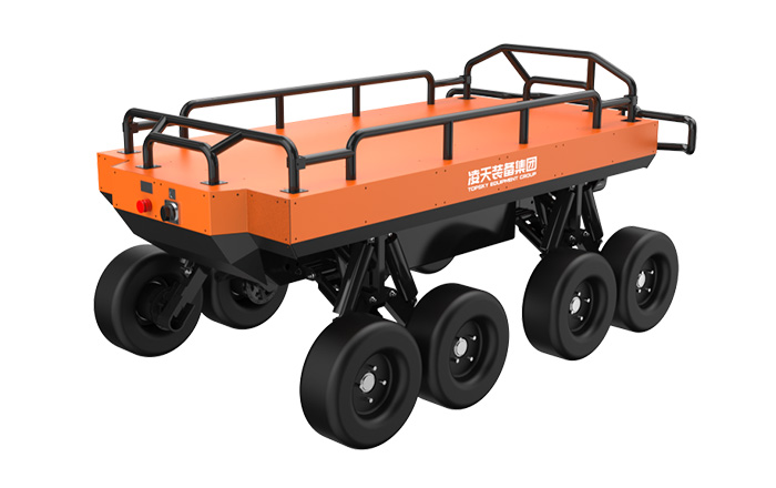 行走方式:八輪行走機構,原地旋轉,全向減震懸掛設計,上下左右均具有獨立減震功能;動力:電動,鋰電池