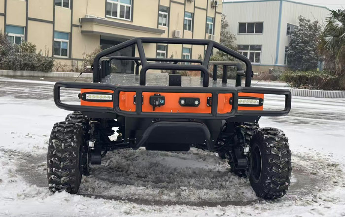 伴隨保障機器人搭載8×8 全輪驅動底盤,配備獨立懸架與大花紋越野輪胎,可輕松應對山地、泥濘、荒漠、雪地、叢林等復雜路況,支持原地旋轉功能,最小轉彎半徑趨近于零,在狹窄巷道、林間小道、戰場掩體等受限空間內也能靈活調整位置,精準跟隨保障目標,避免因地形限制掉隊。