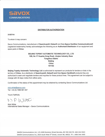 2014年7月31日 ,北京凌天成為 加拿大SAVOX 公司 生命探測(cè)儀 一級(jí)代理