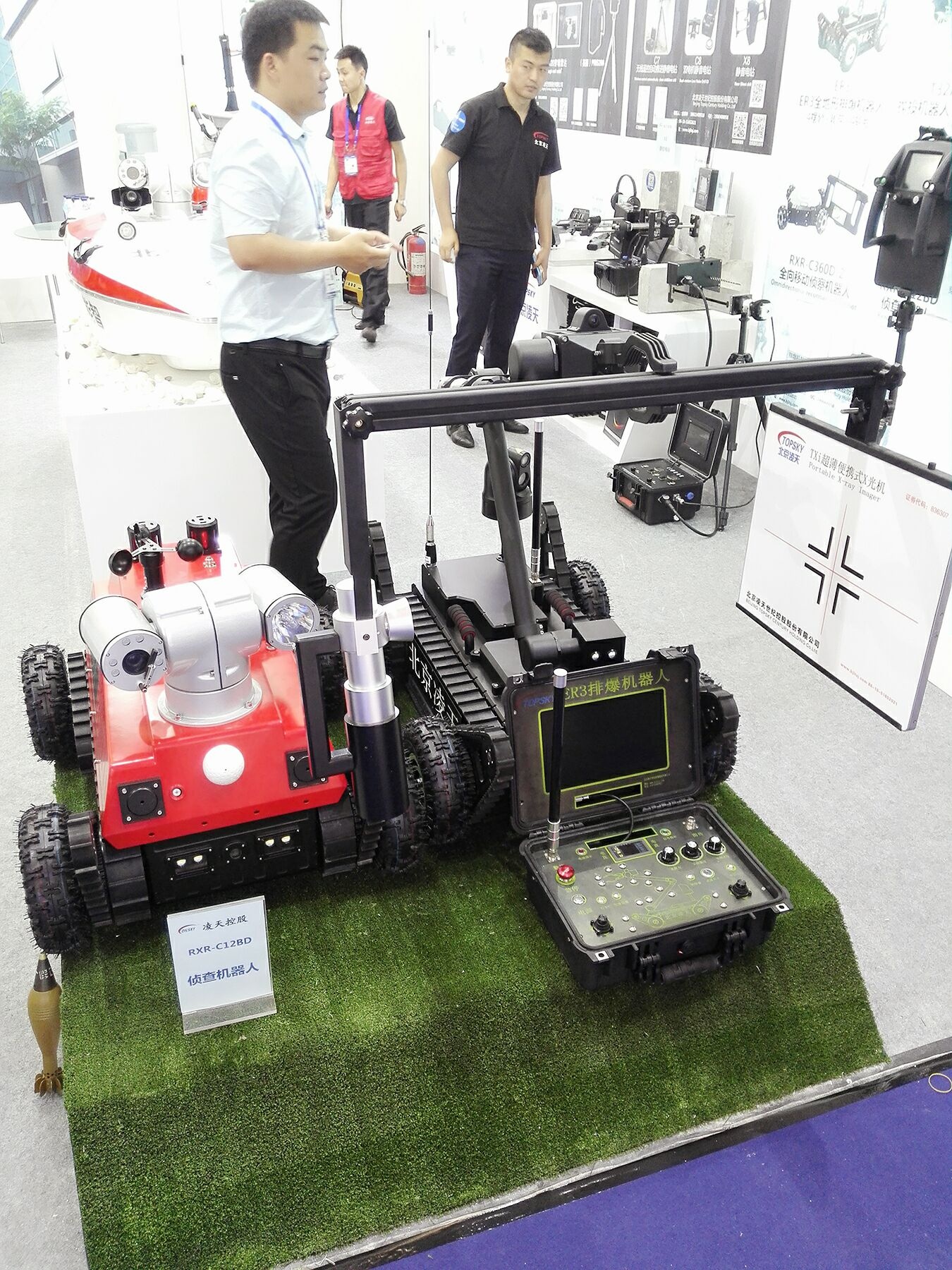 本屆展會將亮相的裝備有多旋翼排爆無人機、無人偵察船、便攜式超薄X光機、低噪音電動破門器、全地形排爆機器人、全向偵查機器人、拋投機器人、遠距離遙控靜音電鉆、雙電機靜音電鉆、多目標穿墻雷達、雙模式非線性節點探測儀等。其中多款裝備更是首次亮相。歡迎中內外朋友來凌天展位參觀指導。