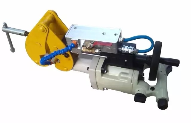ZQG-8/0.4 氣動鋼軌鉆適用于15kg/m-30Kg/m各種鋼軌軌型鉆孔作業。整體結構緊湊,質量輕、操作靈活、夾具裝置有自鎖功能,定位準確、鉆孔精度高。采用空心鉆頭、也可裝卡麻花鉆頭,鉆孔有自動給水功能,造型美觀、礦山輕軌鉆孔理想設備。 鋼軌鉆由主機、雙重斷水保護裝置、進口硬質合金鋼軌鉆頭、凈化器、張緊裝置等組成,液壓膠管總成將氣源和主機連接起來,經過凈化的氣源提供的氣壓驅動鋼軌鉆投高速鉆進,進行切割。灑水冷卻噴頭和雙重斷水保護裝置起到冷卻和降塵的作用,保護機器正常運轉。