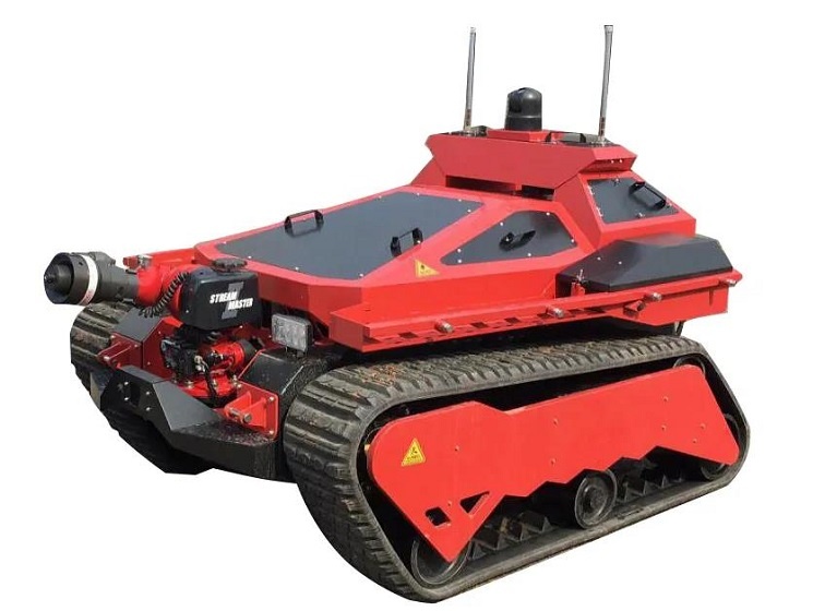RXR-M120D是-款油動力消防機器人,主要由機器人底盤、車載大流量多功能水跑車載云臺.水地攝像頭、超聲波傳感器、紅外熱成像等組成。本消防機器人適用于部分火災現場的火勢控制、洗消、降溫、環境信息采集等。具有動力強勁,載重大,越障能力強,續航時間長,功能豐富的特點。