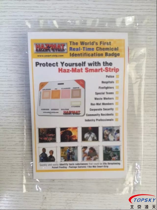l  經特殊設計的指示貼片可檢測到多達八種化學成分包括氯氣,氟化物,神經毒氣,氧化劑,砷,硫化氫,氰化物,酸堿度;