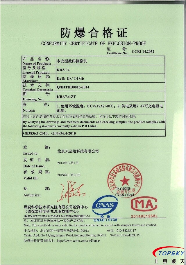 【氫氣級】防爆數(shù)碼攝像機取得化工防爆認證