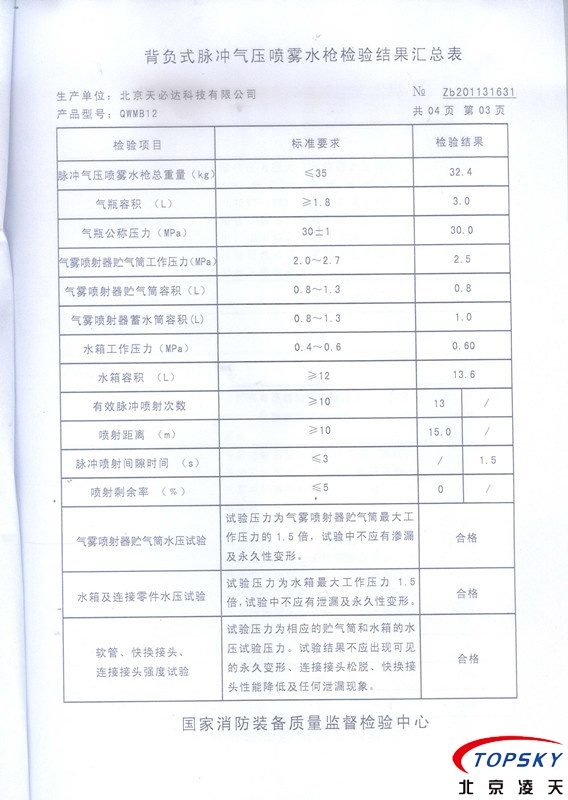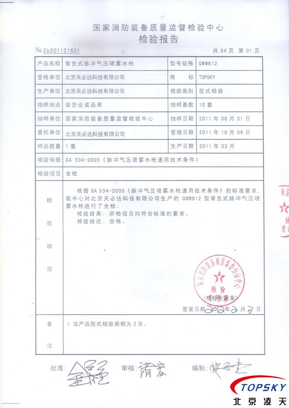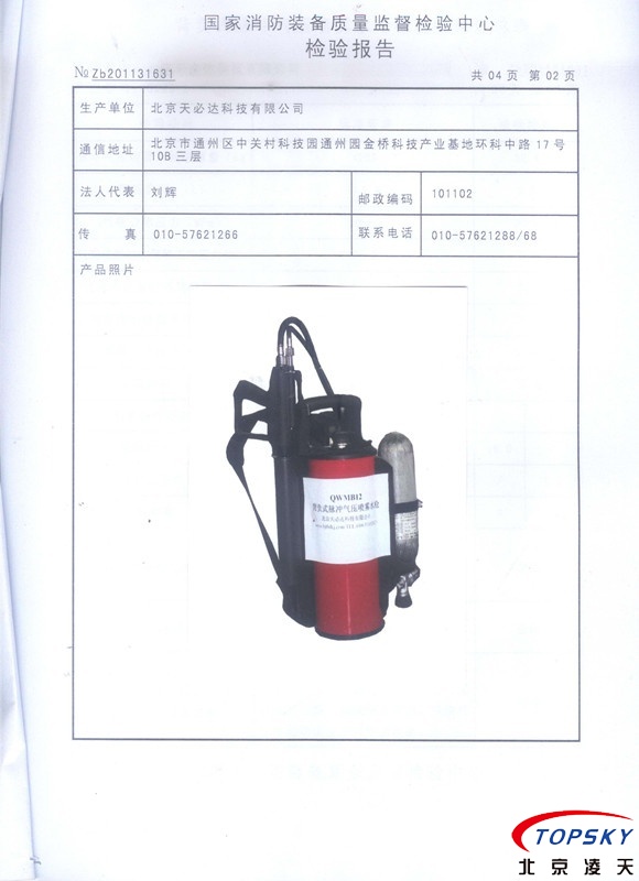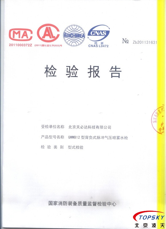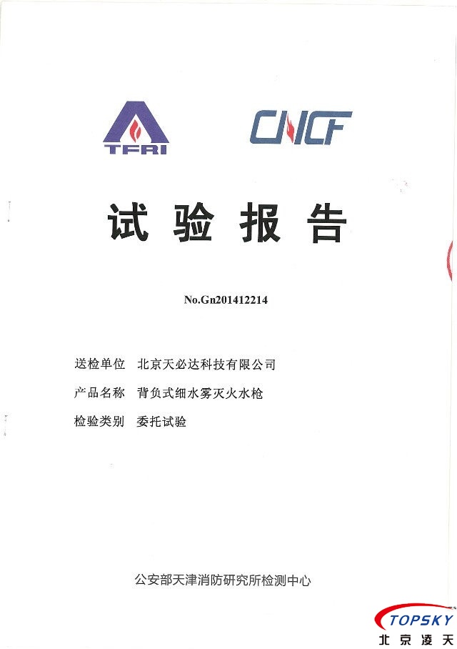 背負式細水霧滅火水槍 通過公安部天津消防所檢驗