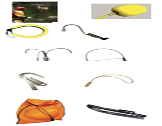 8.弧形套勺的規格,從水里拉回有意識、無意識或受傷的人;材料:材質鋁;重量328g;長度52cm;寬度45cm。