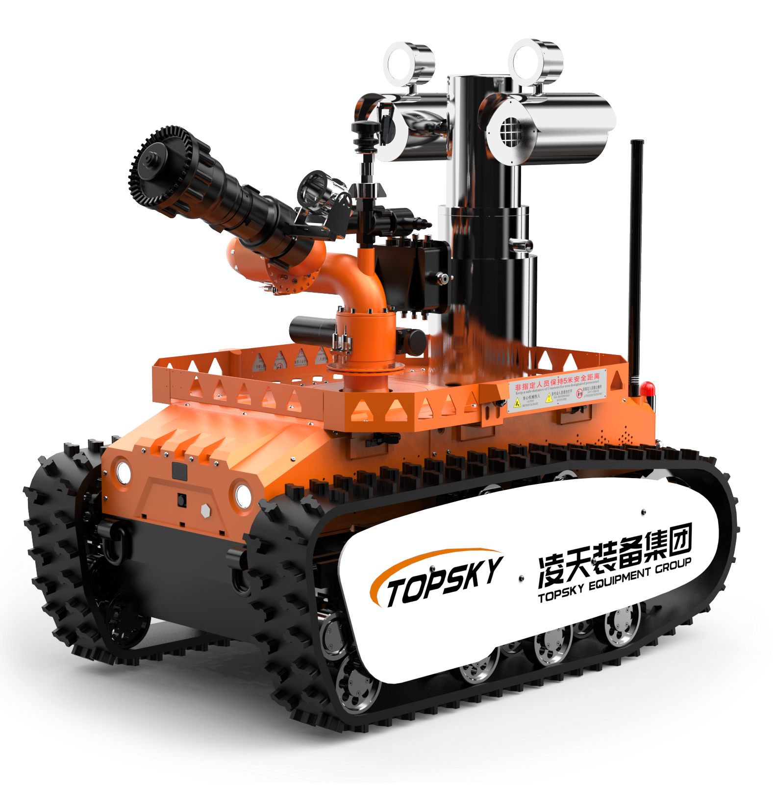 1.主要功能:履帶式防爆機器人底盤采用鋰電池電源作為動力源,使用無線遙控的方式遠距離操控,可搭載形式多樣,原地旋轉設計可使得運更靈活。