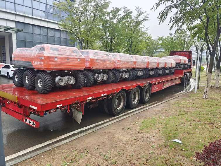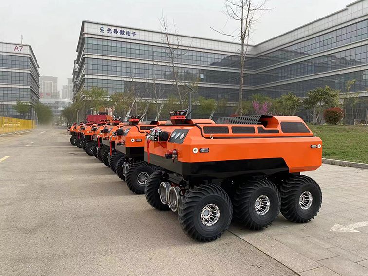 水陸兩棲 采用6×6輪式,液壓驅(qū)動,水陸兩棲,可全地形行駛??稍谒掀⌒羞M(jìn),適合多種救援場景。