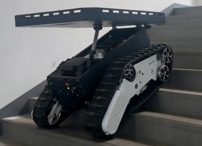 底盤采用橡膠橫紋履帶與先進(jìn)避震系統(tǒng),搭配輕量化一體壓鑄鋁輪及耐用材質(zhì),可實(shí)現(xiàn)常規(guī)爬坡、極限爬坡,適配多地形穿行,保障復(fù)雜環(huán)境穩(wěn)定運(yùn)行。