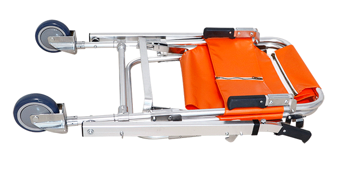 可折疊式結(jié)構(gòu)便于攜帶,用于救護(hù)骨折患者上下樓道之用。產(chǎn)品配備寬型保險(xiǎn)帶,以保證病人在轉(zhuǎn)移過程中的安全擔(dān)架設(shè)有兩個輪子,方便于在地面的移動。擔(dān)架靠背后端設(shè)有加強(qiáng)把手,可承受更多重量。