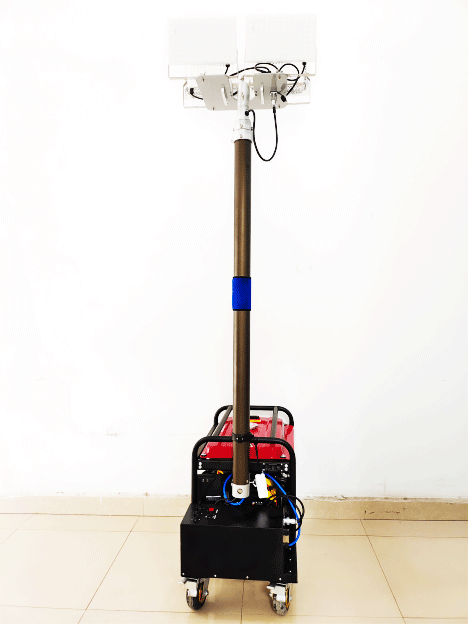 4.通過無線遙控可在50米范圍內分別控制每盞燈的開啟和關閉,使用電動或手動氣泵可快速控制伸縮氣桿的升降。