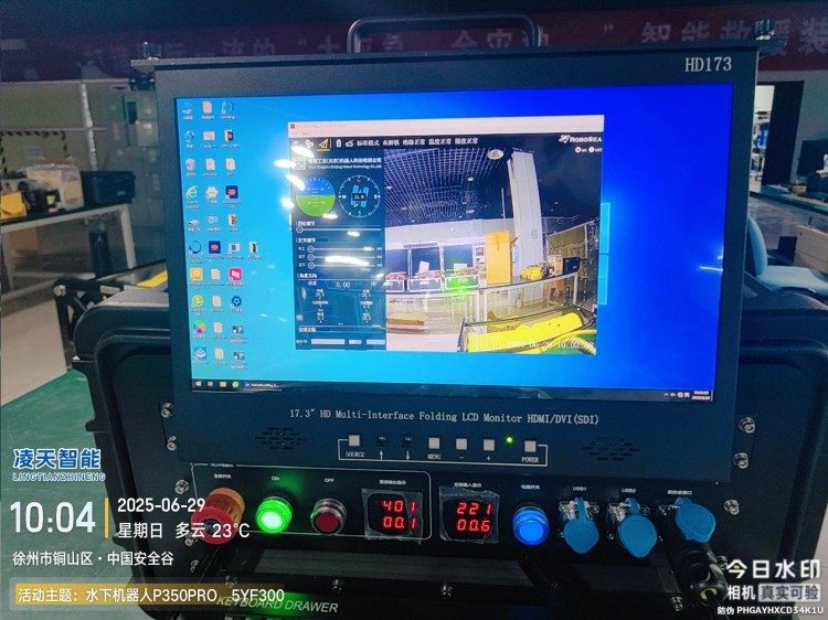 (7)專為水下機(jī)器人硏制的岸基操控系統(tǒng),功能可靠,使用方便;17寸高亮LED 3屏折疊屏,屏幕亮度1000nit,帶有亮度