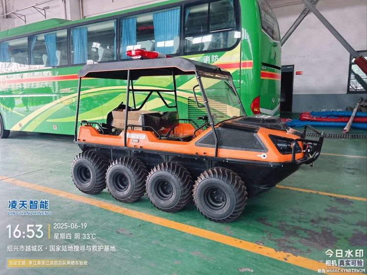 針對水災(zāi)頻發(fā)的地區(qū),水域救援任務(wù)必不可少。但往往洪澇災(zāi)害、城市內(nèi)澇往往伴隨著惡劣的天氣和崎嶇的地形,沖鋒舟需要多次搭載不同交通工具并數(shù)次轉(zhuǎn)移,水陸兩棲全地形車可以輕松通過水淹、泥濘、沼澤等環(huán)境,無需人力搬運(yùn),實(shí)現(xiàn)陸地駕駛和水中行走自由切換,以最快的時(shí)效抵達(dá)現(xiàn)場實(shí)施救援。