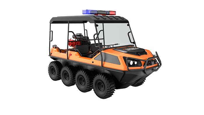 在復(fù)雜惡劣的地形條件和自然環(huán)境下,森林消防水陸兩棲全地形車可以讓搜救隊員和攜帶的救援裝備快速到達救援現(xiàn)場,減少徒步帶來提供消耗,完成最后一公里最好五分鐘緊急救援任務(wù)。森林消防水陸兩棲全地形車可配備點到絞盤、救援擔架組件、探照燈、警示燈、警報器、脫鉤、破拆工具等裝備, 給救援團隊提供救援保障,更安全的解救傷員和疏散群眾。