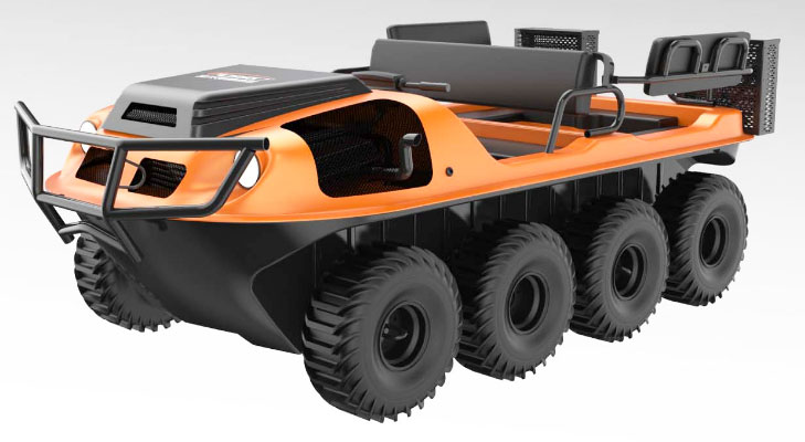 采用 8×8 輪式底盤,水陸兩棲,可全地形行駛。