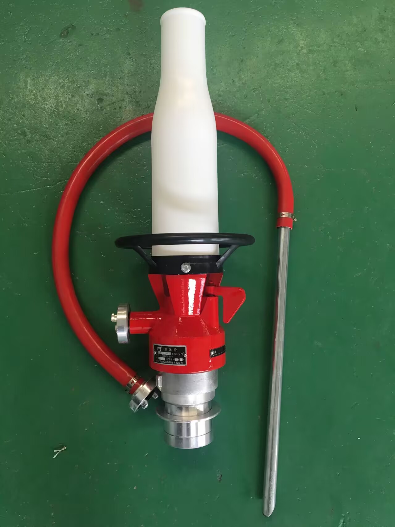 符合執行標準GB25202-2010??諝馀菽瓨屖钱a生和噴射空氣泡沫的設備,是一種輕便的消防器材,它的管牙接口與水帶接口相接,供水和泡沫液混合后可用來產生和噴射空氣泡沫,撲救中型油類火災。