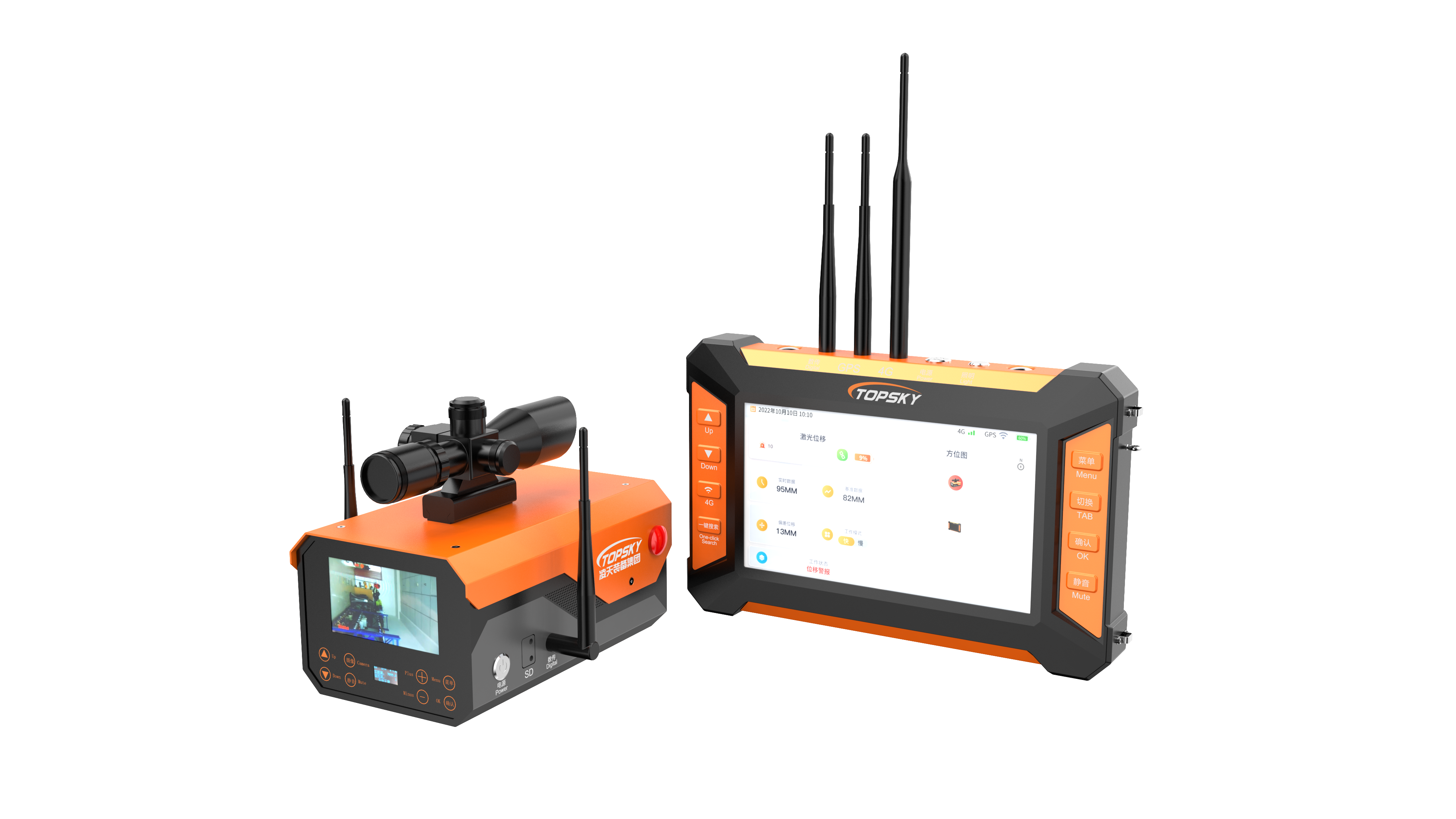 配備便攜主機,支持無線遠程操控,雙向無線傳輸,可調節和重置監測儀報警數值,聯動報警。具有GPS定位和一鍵搜尋功能,當傾角監測儀被埋于廢墟中時,可通過一鍵搜尋進行查找。